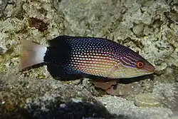The Black-banded hogfish (Bodianus macrourus) is a species of wrasse from the genus Bodianus.[2] It is restricted to a small area in the Western Indian Ocean. The only known locations are Mauritius, Réunion and St. Brandon, where it occurs near tropical reefs at a depth of 10-40 meters below surface.[2]