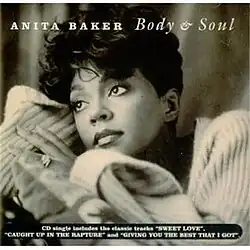 "Body and Soul" is a song by American recording artist Anita Baker, released in August 1994 by Elektra Records, as the lead single in support of her fifth album, Rhythm of Love (1994). The song was written by Ellen Shipley and Rick Nowels, and produced by Barry J. Eastmond. It received critical acclaim, peaking at number four on the US Billboard Hot Black Singles chart and number 36 on the US Billboard Hot 100. The song earned Baker another top 40 hit following 1988's "Just Because", which peaked at number 14 on the Hot 100.[4] In Europe, the song charted in the UK and the Netherlands, reaching number 14 on the latter chart.