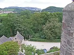 The ruins of Cadwallon Lawhir's residence are on a woodland knoll above the present Bodysgallen Hall.[1] By 1835 it was a ruin totally overgrown by thorns. According to the ancient record of Caernarvon,[2] Bod Caswallon (Bodysgallen) was one of the townships called Tre Welyog, meaning it was a unit of hereditary land (gwely) held in common by members of a wider family unit in medieval Wales,[3] which was often divided and subdivided among heirs to the fourth generation; with the passage of time some of the smaller landholders might be "bought out" and become tenants of a larger estate. This possibly might have been one of three gwelyau, originally belonging to Gloddaeth.