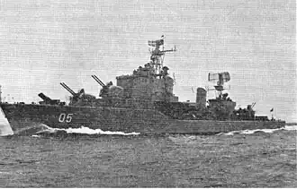 Bofors 120 mm Naval Automatic Gun L/50 (full English name: Bofors 120 mm Automatic Gun L/50 In Naval Twin Turret),[2] also known as Bofors 120 mm gun model 1950 and the like, was a Swedish twin-barreled 120 mm (4.7 in) caliber fully automatic dual purpose naval gun turret system designed by Bofors from the end of the 1940s to the early 1950s to meet a request from the Dutch Navy.[4] Besides the Dutch Navy, the weapon was also adopted by the Swedish and the Colombian Navy.[4]