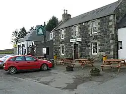 The Bognie Arms (a public house and hotel) is found at the junction, and is thought to have been built following the acquisition of the surrounding lands by the Morisons of Bognie in 1635.[1] Thus, the building bears the heraldic insignia of the Baron of Bognie and Mountblairy.