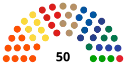 For the 2024 legislative election, the legislature will have 50 elected members from 5 electoral districts.[16] The current speaker, Adityawarman Adil of the Prosperous Justice Party, took office on 24 September 2024.[17]