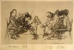 The Quartet was founded in Prague by three pupils of Antonín Bennewitz (Karel Hoffmann, Josef Suk and Oskar Nedbal) and a pupil of Hanuš Wihan (Otto Berger); Bennewitz and Wihan were both teachers at the Prague Conservatory. Wihan had himself studied at Prague, and was cellist of the chamber quartet of Ludwig II in Munich, becoming Professor at Prague in 1888. He replaced his student Otto Berger as cellist in the quartet when Berger died prematurely. Wihan then directed the Quartet until 1913 when the strain of touring obliged him to retire from it and resume his teaching. His place was then taken by Ladislav Zelenka, who since 1911 had been playing with the Ševčík-Lhotský Quartet. In 1906, the violist Nedbal had run off with Hoffmann's wife;[2] during the tour in England, his place was at short notice taken by Lionel Tertis and afterwards formally by Jiří Herold. The group made repeated tours in Europe, especially with the quartets of Dvořák and Smetana, and were noted for their warm tone and fiery rhythms. In 1922 the four members were appointed professors at the Prague Conservatory. The group disbanded with a concert on 4 December 1933, to honour Suk’s 60th birthday.[1]