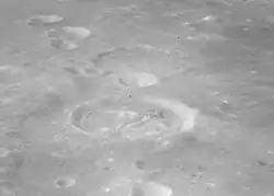 The crater has a low rim along the north wall, and the floor is somewhat irregular with a set of fractures[1] crossing the floor. Satellite crater Bohnenberger A is also somewhat fractured.