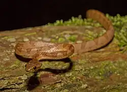 Boiga kraepelini, commonly known as the square-headed cat snake, Kelung cat snake,[1] or Taiwanese tree snake,[3] is a mildly venomous species of rear-fanged snake in the family Colubridae. The species is native to East Asia and Southeast Asia (Taiwan, China, Vietnam, and Laos).[1][2][4] Its specific name, kraepelini, honours Karl Kraepelin, a German naturalist.[4][5] The common name, Kelung cat snake, refers to its type locality, Keelung in northern Taiwan.[2]