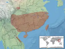 B. kraepelini is found throughout Taiwan to 1,000 m (3,300 ft) asl,[4] large parts of eastern, central, and southern China (Anhui, Chongqing, Fujian, Gansu, Guangdong, Guangxi, Guizhou, Hainan, Hunan, Jiangxi, Sichuan, and Zhejiang provinces), Laos, and northern Vietnam.[1][2]