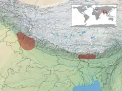 It is found in India (Himachal Pradesh up to Sikkim), Nepal and Bhutan.