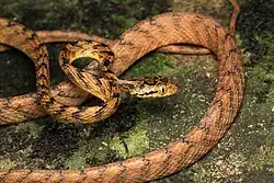 Boiga thackerayi, or Thackeray's cat snake, is arboreal, mostly seen close to forest streams, and is active during the night. It is rear fanged and is known to grow up to three feet in length. It is endemic to the Western Ghats, India.[1]