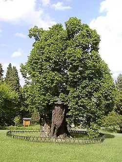 A natural and landscaped surrounds Bojnické Castle. While local peoples cultivated plants around the castle, the first formally documented park dates to 1910. The park features several prominent trees and landscaped areas.[1]