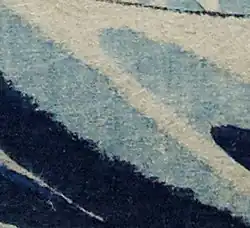 The technique ichimonji bokashi (一文字ぼかし, "straight-line bokashi") is the one associated with the works of Hokusai and Hiroshige to represent the horizon, sea, or sky. Ink is applied to one end of the brush (kata-bake) which is drawn across the desired portion of the printing block; this area is first wetted with a zōkin cloth, so that the ink bleeds somewhat across the wet area. This creates a gradation at the width of the brush.[3] Straight line gradation with an uneven edge is known as ichimoji-mura-bokashi.[4]
