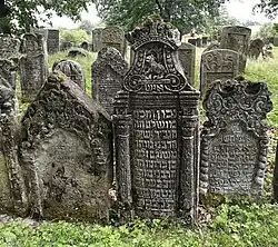 The Bolekhiv Jewish Cemetery is located on a hill near Mandryka St. in Bolekhiv (Ukrainian: Болехів; Polish: Bolechów; Yiddish: באָלעכאָוו), Ivano-Frankivsk Oblast (province) of Ukraine.[1] Many of the tombstones in the cemetery contain epitaphs of animals (birds, lions, and bears), plants, and arabesque carvings. Animals graze on the grass in the cemetery keeping the tombstones relatively visible,[2] although many of the stones are tilted or laying completely face up or down. There are between 2,000 and 3,000 individual graves in the cemetery.[3]