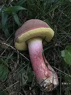 Boletus patrioticus, also known as the patriotic bolete is a basidiomycete mushroom, of the genus Boletus in the family Boletaceae. Its name comes from its coloration (red skin, white flesh, blue bruising) resembling the flag of the United States.[1]