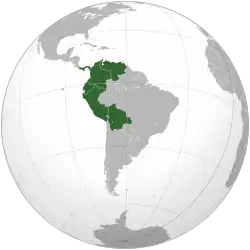 The Bolivarian countries[1] are six Hispanic American countries (Bolivia, Colombia, Ecuador, Panama, Peru and Venezuela) whose republican origin is attributed to the ideals of Simón Bolívar and the independence war led by the Venezuelan military in the viceroyalties of New Granada and Peru.