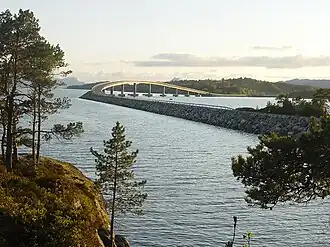 The 555-metre-long (1,821 ft) bridge is located 10 kilometres (6.2 mi) southeast of the town of Molde. The bridge has 11 spans, the longest of which is 55 metres (180 ft) long and the maximum clearance to the sea is 16 metres (52 ft).[1]