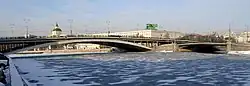 Bolshoy Ustinsky Bridge (Russian: Большой Устьинский мост) is a steel arch bridge that spans Moskva River near the mouth of Yauza River, connecting the Boulevard Ring with Zamoskvorechye district in Moscow, Russia. It was completed in May 1938 by V.M.Vakhurkin (structural engineering), G.P.Golts and D.M.Sobolev (architectural design).[1][2]