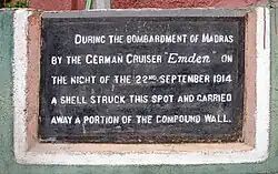 The bombardment of Madras was an engagement of the First World War, at Madras (now Chennai), British India. The bombardment was initiated by the German light cruiser Emden at the outset of the war in 1914.[1]