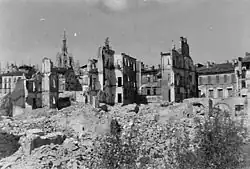 At this point, Bomber Command halted its attacks, as it was thought that the "persuasive" effect had been achieved, and further bombings could have instead fueled anti-British sentiment.[2] The four August raids had caused over 1,000 dead and hit half of the buildings in the city, destroying or heavily damaging 15% of them and leaving over 250,000 people homeless.[1] The work of 5,000 workers and 1,700 soldiers was needed to remove the ruins.[1] Water, light and gas supply resumed within 48 hours, while public transport was nearly annihilated.[1]