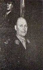 The marines retreated in disarray towards the Ministry of the Navy, where they would remain under siege from loyal Army units until the end of hostilities that evening. Lucero ordered the use of heavy machine guns against the rebels, and 81mm mortars were brought in to reinforce the assault. At 15:17, after two telephone conversations between Olivieri and Lucero, the rebels waved a white flag from the Ministry of the Navy. However, when generals Carlos Wirth and Juan José Valle arrived in a jeep to discuss the terms of surrender, the second wave of air attacks began. The explosions destroyed two floors of the south wing of the Ministry of War, killing a soldier and a general.[2] At the same time, an M4 Sherman fired on the second floor, causing a fire in the admirals' room.[2]