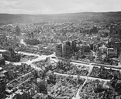 The bombing of Stuttgart in World War II was a series of 53 air raids that formed part of the strategic air offensive of the Allies against Germany. The first bombing (by 20 aircraft of the Royal Air Force) occurred on August 25, 1940, and resulted in the destruction of 17 buildings. The city was repeatedly attacked over the next four and one-half years by both the RAF and the 8th Air Force as it had significant industrial capacity (including the Daimler and Porsche automotive factories) and several military bases, and was also a center of rail transportation in southwestern Germany. Stuttgart endured 18 large-scale attacks by the Royal Air Force (RAF) during the war (the first and last of which were on 5 March 1942 and 13 February 1945 respectively),[1] during which 21,016 long tons (21,353 t) of bombs were dropped on the city,[2] but the RAF concluded that its attacks against Stuttgart were not as effective as they could have been:[3]