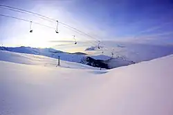 An accompanying music video for "BonBon" was initially uploaded to Nesër's official YouTube channel on 30 December 2015.[61] After she was signed to the label, the video was transferred on 7 March 2016 to the channel of American record label Ultra Music on the aforementioned platform.[62][63] The three-minute long video was filmed in the mountainous region of Brezovicë, Kosovo.[64] It features scenes of Istrefi walking across a snow-covered road dressed in a green parka-jacket with bright pink fur.[62][64]