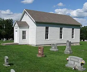 Bond's Chapel Methodist Episcopal Church, also known as Bond's Chapel, is a historic Methodist Episcopal church located near Hartsburg, Missouri. It was built in 1883–1884, and is a simple rectangular frame building, set on piers composed of creek rock and mortar. It measures 24 feet by 33 feet and has a front gable roof and vestibule.[2]