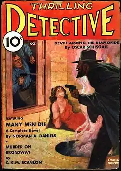 The peak era for these seems to be the 1930s with weird menace and detective pulps and the 1960s heyday of men's adventure magazines.