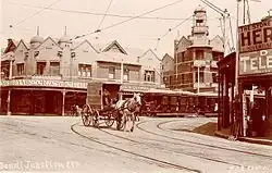 A tramline was built to the Bondi Beach area in 1881, with a crossing loop line following in 1882 and the tramway junction off the Waverley line opened on 24 May 1884. The suburb acquired its name at this time.[8]
