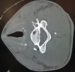 | A bone cyst in the vertebra of the neck as seen on CT | |