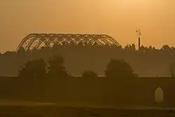 In 2007 construction began on an excavation hall that covered the entire site. Using a large overhead crane and digging bucket up to 160 tonnes (160 long tons; 180 short tons) of contaminated earth was excavated per day. It was then loaded on sealed rail cars and taken to incinerators in Germany where it was burned at temperatures up to 1,200 °C (2,190 °F) and turned into chemically stable ash. In July 2010 some of the chemicals in the dump exploded during excavation. One machinist suffered minor injuries and the project paused for several months to evaluate the hazard.[8] At the end of August 2016 the last of the contaminated soil was removed, bringing the total removed and incinerated to 202,200 tonnes (199,000 long tons; 222,900 short tons). The project cost BCI a total of SFr 380 million.[9]