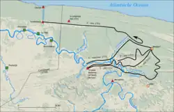 Fourgeoud, who had previously served in Berbice, managed to drive Boni's forces back, although they were never defeated. Eventually, they retreated into French Guiana.[11] The French intendant Pierre Victor Malouet visited Paramaribo in 1777 to discuss with Dutch leaders the issue of the 200 Maroons on French territory.[13]