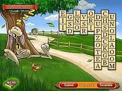Bonnie's Bookstore is a word-forming puzzle video game developed by New Crayon Games and published by PopCap Games. On each level, tiles containing one (or in some cases, two) letters are arranged in a specific structure. As in the similar title Bookworm, players use adjacent letters to form valid words, with points being awarded based on the length of the word. In most cases, once a letter is used, it is removed from the board, with existing letters moving downwards and new letters filling in from the top.[2][3]