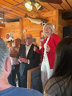 She ran in the 2023 leadership election of the Ontario Liberal Party as a fiscally conservative[3] Blue Grit[4] on the centre-right[5] flank of the party and won on the third ballot over her more left-leaning rivals. She resigned as mayor on January 12, 2024, in order to focus on her leadership of the Ontario Liberal Party, triggering the 2024 Mississauga mayoral by-election.