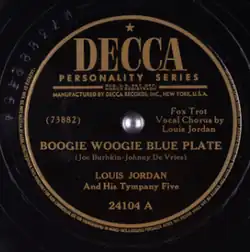 - ^ "Decca matrix 73882. Boogie woogie blue plate / Louis Jordan and his Tympany Five - Discography of American Historical Recordings". adp.library.ucsb.edu. Retrieved 2022-08-10.
