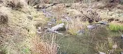 The Booroolong frog was distributed along eastern Australia, ranging from the Queensland border to the Victorian Border.[1] This species was once abundant in streams above about 200 m (660 ft), until drastic declines began to occur in the mid-1980s in the Northern Tablelands in northern New South Wales. A dramatic population reduction in the mid-1980s and 1990s made it so only a limited amount of the prior distribution range was occupied. Now, at the majority of the remaining sites, there is only a low population of the species present. Although some declines have occurred in the Central Tablelands and Southern Tablelands of New South Wales, they have not been so severe. As of 2021 in the Northern Tablelands, the Booroolong frog has disappeared almost entirely from high elevation streams and is only found in two streams near Tamworth, as well as near Glen Innes in a private dam, with this total area covering only 10 km2 (3.9 sq mi).[4][1] In the Central Tablelands, it is found along the Abercrombie River and Turon River catchment areas. In the southern tablelands, this species is still found along the Tumut River, Yarrangobilly River, and the upper Murray River catchment areas. It was still present at one stream in Victoria in 2021. Each subpopulation, of which there are 28 spanning three regions (Northern, Central, and Southern Tablelands), is forced into isolation from other subpopulations by great areas of unsuitable habitat.[4]