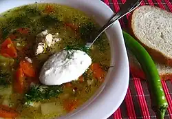 Borș[1] is either a liquid ingredient used in Romanian and Moldovan cuisine or the sour soup (ciorbă) typically made with this ingredient. It used to be common in Hungary too, it is called Cibere.