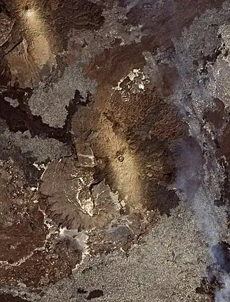![]() Borale Ale volcano (centre) in a 2017 image taken during the eruption of Erta Ale volcano. | |