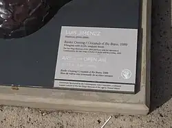 2. ^ SNOW, SHAUNA (1992-04-28). "Chicano Artist Alters Stereotypes: Art: Luis Jimenez brings a human dimension to undocumented workers and lowriders. Some of his work is showing in Venice". Los Angeles Times. ISSN 0458-3035. Archived from the original on 2023-10-02. Retrieved 2018-04-24.