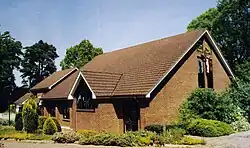 There has been a Roman Catholic place of worship on the garrison site since the opening of Bordon camp. The priest was provided with a portable altar, which could be set up where ever space could be found. Initially this was within a marque set-up on St Lucia barracks square, which then moved to a wooden hut on Kildare Close. The hut was used for living accommodation from the outbreak of World War I, the location again became portable. In 1919, parishioners converted an allocated former wooden canteen opposite Martinique House, which became Sacred Heart Church. This was demolished in 1990, with a new brick church built on the top of Chalet Hill.[5]