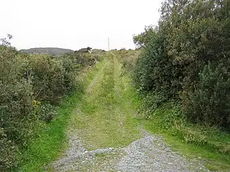 "Boreen" also appears sometimes in names of minor urban roads such as Saint Mobhi Bóithrín (Irish: Bóithrín Mobhí), commonly known as Mobhi Boreen in Glasnevin, Dublin.[4][5] To be considered a boreen the road or path should not be wide enough for two cars to pass and have grass growing in the middle.