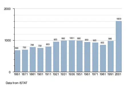 - ^ "Popolazione Residente al 1° Gennaio 2018". Italian National Institute of Statistics. Retrieved 16 March 2019.