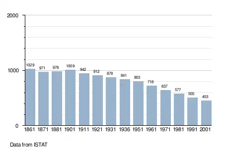- ^ Giuffrida, Angela (2017-05-07). "Italian village offers €2,000 gifts to boost dwindling population". The Guardian. ISSN 0261-3077. Retrieved 2017-05-10.