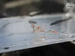 The body is translucent white and speckled with opaque white spots. There are red streaks along the processes of the back and sides, from the oral tentacles to the base of the rhinopore sheaths, on the cerata and the inner side of the rhinphore sheaths.[2][3][4]