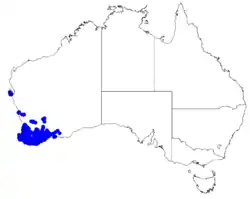 3. ^ a b c Marshall, John; Wilson, Margaret; Tullis, Brian (1990). Wildflowers of the West Coast Hills Region : the plants and flowers of the Darling Scarp and Range in the Kalamunda Shire, the backdrop to Perth, Western Australia (2002 (revised) ed.). Western Australia: Quality Publishing Australia. p. 64. ISBN 1875737243.