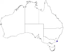 The species is found only in eucalypt woodland on a ridge atop Mount Imlay in Mount Imlay National Park near Eden in far southern New South Wales.[3]