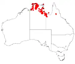 This boronia grows in heath, woodland and forest on sandstome between Mornington Island and Westmoreland in Queensland to the Macadam Range and Tiwi Islands in the Northern Territory, where it is the most common boronia.[2][3]