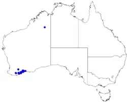 This boronia grows on breakaways and slopes between Ongerup and Hopetoun in the Mallee biogeographic region.[2][3]