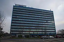 The council has its main offices at International House, an office block built in 1972 opposite Ashford International railway station, which the council bought in 2014, initially renting it out to other organisations.[27][28] The council moved into International House in 2024.