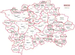 Since the Municipalities Act of 1990, statutory cities in the Czech Republic have been allowed to use the terms city district (Czech: městská část) and city region (Czech: městský obvod) at their discretion to describe self-governing subdivisions of the city.[1] The two terms are legally equivalent. For example, the cities of Brno and Opava term their boroughs "city districts", while Ostrava, Pardubice, Plzeň, and Ústí nad Labem use "city regions". Across the various cities in the Czech Republic, there are 94 city districts as compared to 46 city regions. This act predates the dissolution of Czechoslovakia into the Czech Republic and Slovakia. Slovakia also uses the term city district (Slovak: mestská časť) for its boroughs.