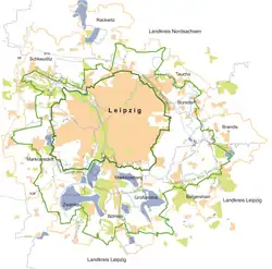 Borsdorf is a member of 'Grüner Ring Leipzig' a coordination group of Leipzig and the surrounding municipalities. As part of this, the 'Grüner Ring' (green belt) bicycle round course is running through Borsdorf.