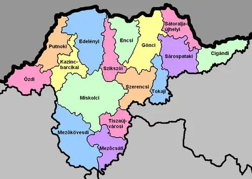 ![]() Borsod–Abaúj–Zemplén County within Hungary | |